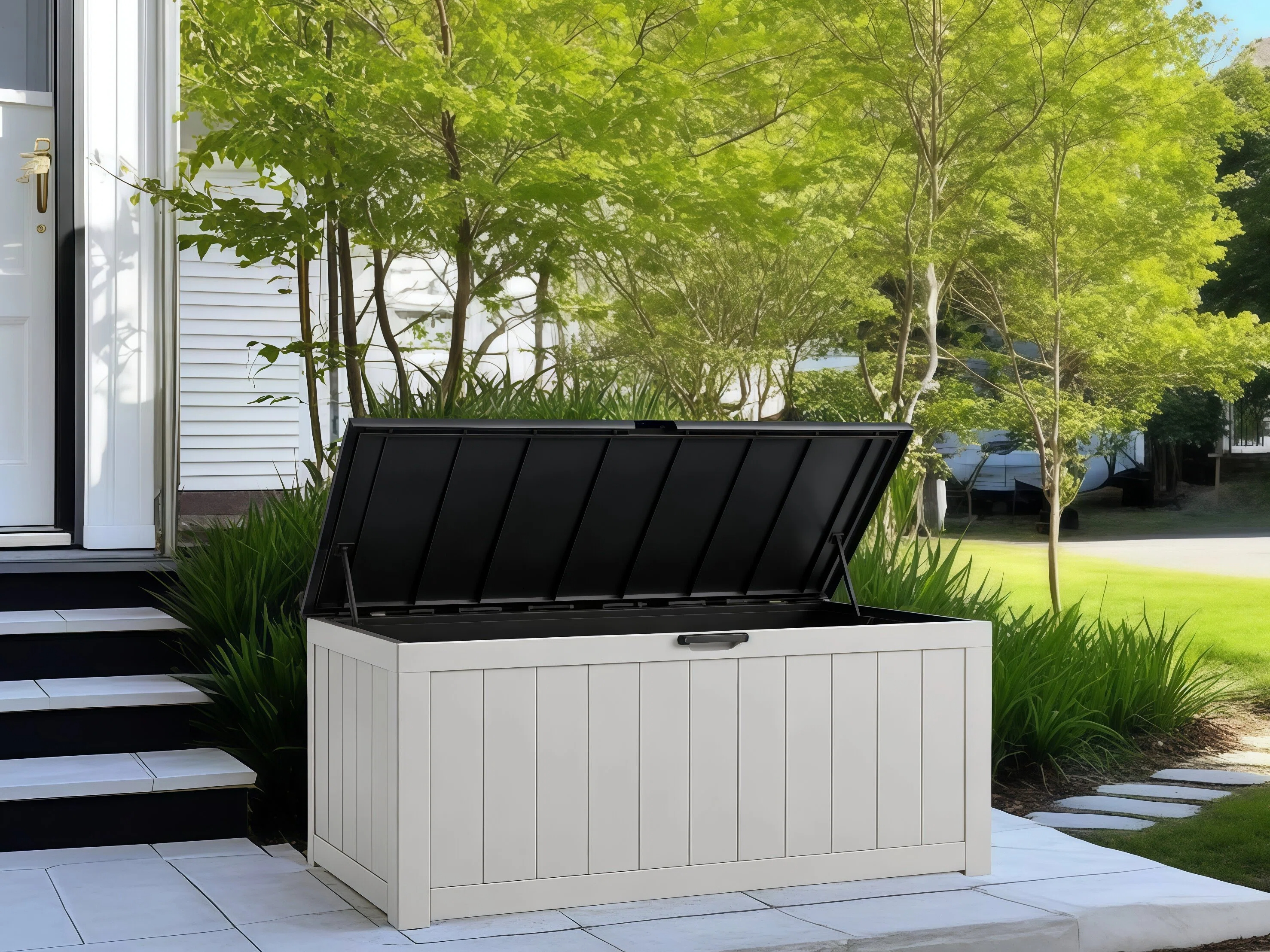 Outdoor Storage Box Wood Effect Resin 117cm Dark Gray